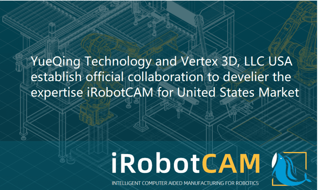 Abstract: On April 8th , 2024, Nanjing Yueqing Technology and Vertex3D LLC United States esbatlish the partnership to provide the expertise iRobotCAM solution to robotics users in robot teaching,robot application programming and debugging.