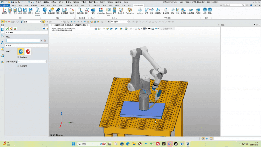 6. 針對機器人應用場景,利用iRobotCAM,可以對機器人的整體焊接場景進行仿真,直觀的查看焊接的過程。