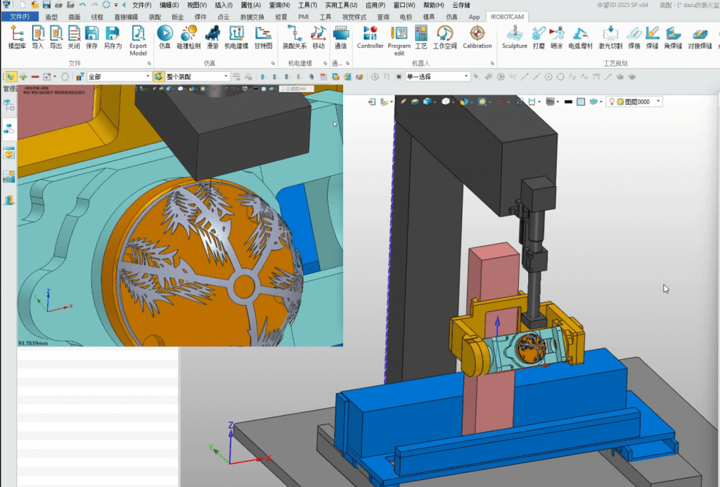 下面我們看一下iRobotCAM如何利用機(jī)器人實(shí)現(xiàn)5軸鏤空?qǐng)D案的加工,通過iRobotCAM靈活的編程能力,實(shí)現(xiàn)5軸軌跡的生成并實(shí)現(xiàn)機(jī)器人快速仿真。