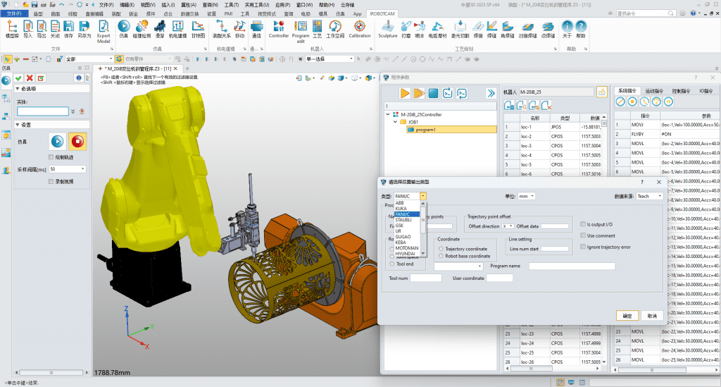 6. 利用iRobotCAM的后置處理能力,可以高效的適配包括發(fā)那科、ABB、安川、庫卡、 廣數(shù)、新時(shí)達(dá),埃斯頓、華數(shù),圖靈等各類機(jī)器人,高效的利用一套軟件管理多種品牌或多種設(shè)備。
