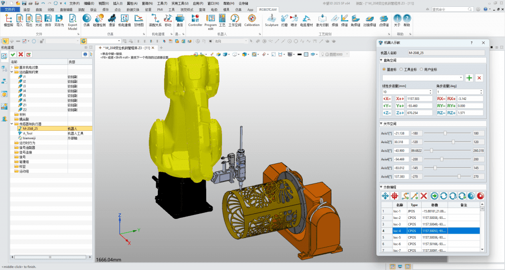 2. 機(jī)電建模與運(yùn)動(dòng)仿真:iRobotCAM具備機(jī)電建模模塊,可進(jìn)行產(chǎn)線的建模設(shè)計(jì)和機(jī)器人的虛擬調(diào)試,在實(shí)際生產(chǎn)前通過虛擬環(huán)境模擬激光加工過程,提前發(fā)現(xiàn)并解決可能出現(xiàn)的問題,如機(jī)器人運(yùn)動(dòng)碰撞干涉、檢查機(jī)器人奇異性、可達(dá)性和碰撞性以及激光路徑錯(cuò)誤等,減少實(shí)際調(diào)試中的錯(cuò)誤和風(fēng)險(xiǎn),提高生產(chǎn)效率和安全性。